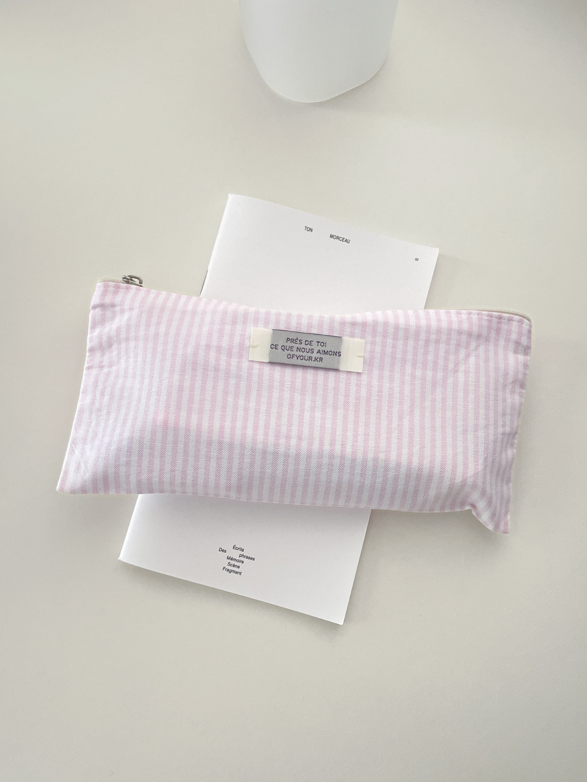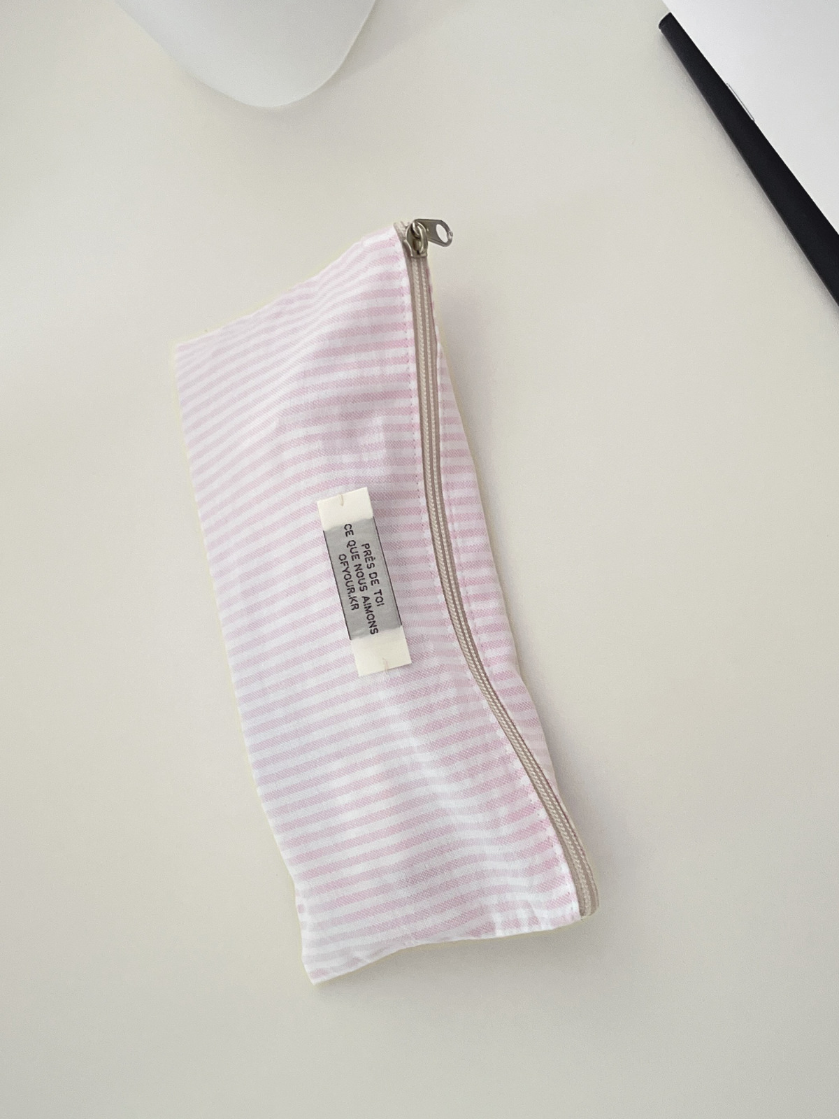 - 간혹 원단에 하늘색 펜 자국이 있을 수 있으며, 이는 원단 재단 시 사용된 수성펜으로 물을 살짝 묻혀 주시거나 세탁 시 말끔히 지워집니다.